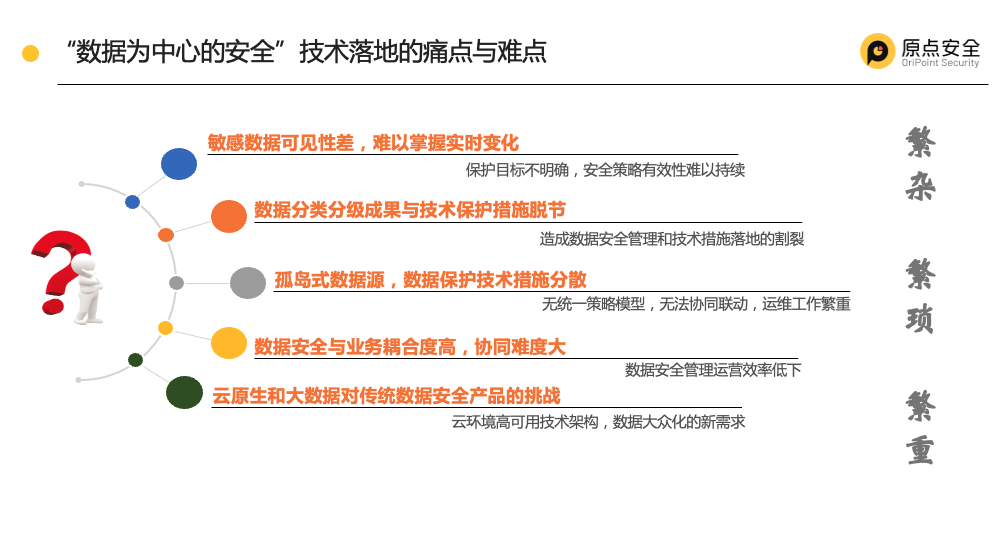 数据涉及业务场景多、生命周期长,从数据采集到数据销毁,数据安全管理的环节庞杂,“数据为中心的安全”应该如何着手?为什么说加强数据使用环节的安全管控能够释放数据产能?“数据为中心的安全”技术落地过程中的一系列痛点和难点该如何应对?