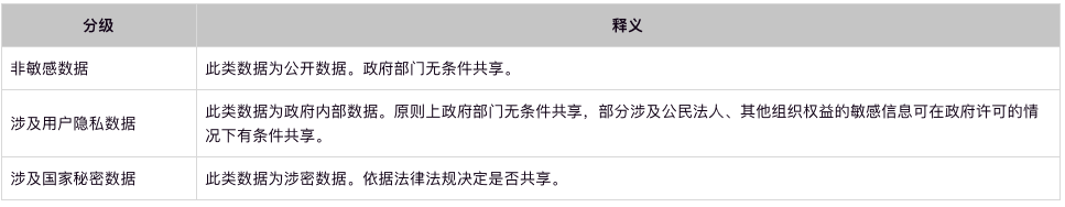 政府数据的分级由数据的敏感程度划分,分为如下3个级别。